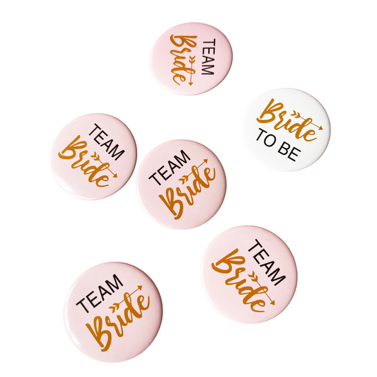 5db "Team Bride" es 1db "Bride TO BE" kitűző szett