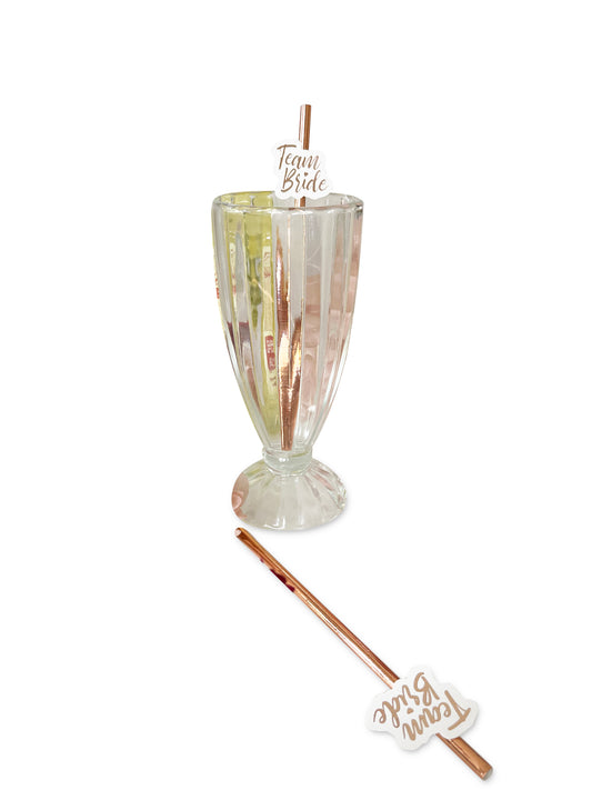 10 db-os "Team Bride" arany rózsaszín szívószálak lánybúcsús italokhoz